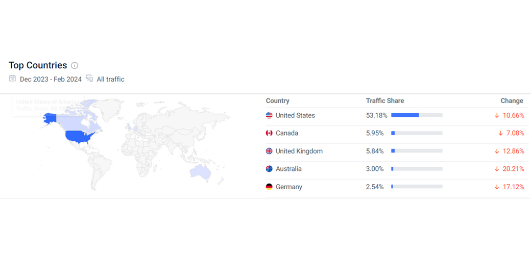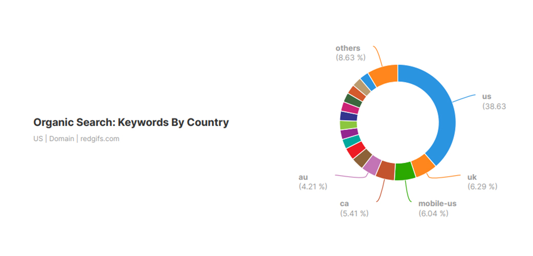 Learn about the global distribution of visitors to your competitor’s website and tap into untapped markets. United States, United Kingdom, and Canada are the top three countries where Redgifs.com’s core audience resides.